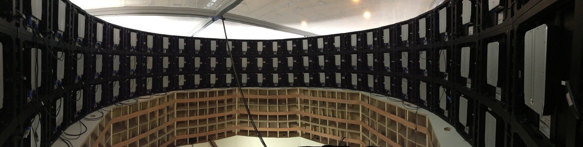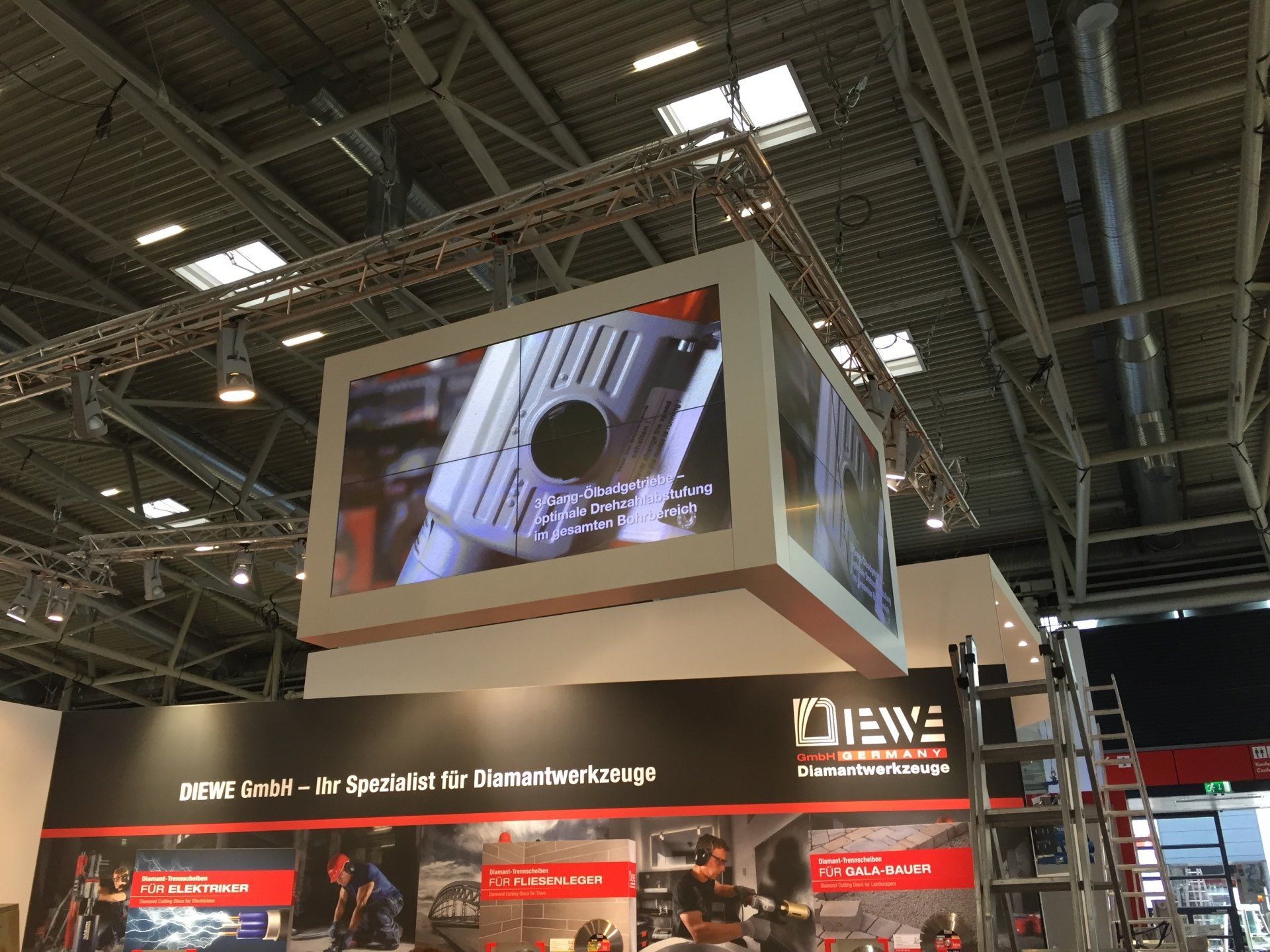 Der Einsatz von Medienservern ermöglicht es uns auch Vorort flexibel zu reagieren und zu produzieren, sodass wir beispielsweise Ihr Firmenlogo, Fotos oder andere Informationen problemlos und unkompliziert in eine Animation integrieren können.